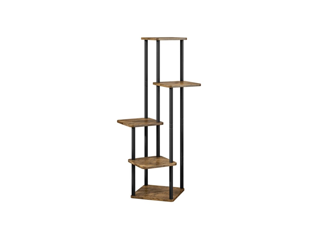 materiál:  kovová konstrukce/ laminodeska, barva černáv kombinaci se dřevodekorem rustikal, moderní styl, 5 polic, nosnost na jednu polici: 3 kg, tloušťka tyče:1,6 cm, výška nožiček: 1 cm, dodáváno v demontu
