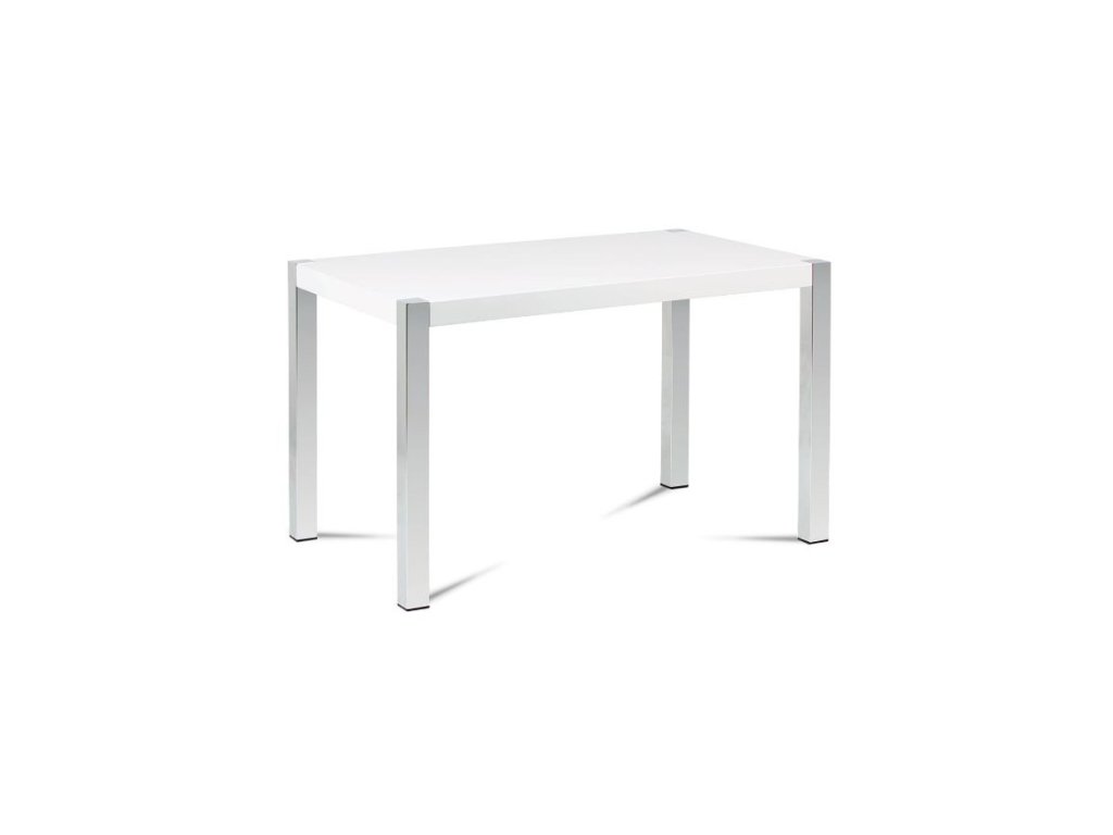 Moderní jídelní stůl v minimalistickém designu. Deska stolu je MDF korpus o tloušťce 5 cm, v povrchové úpravě bílý vysoký lesk. Nohy jsou kovové, čtvercového průřezu o rozměru 6 x 6 cm a chromované.Užitná šířka mezi nohami je 108 cm na delší a 63 cm na kratší straně. Celková výška je 75 cm, světlá výška je 70 cm.Buďte první, kdo napíše příspěvek k této položce.
