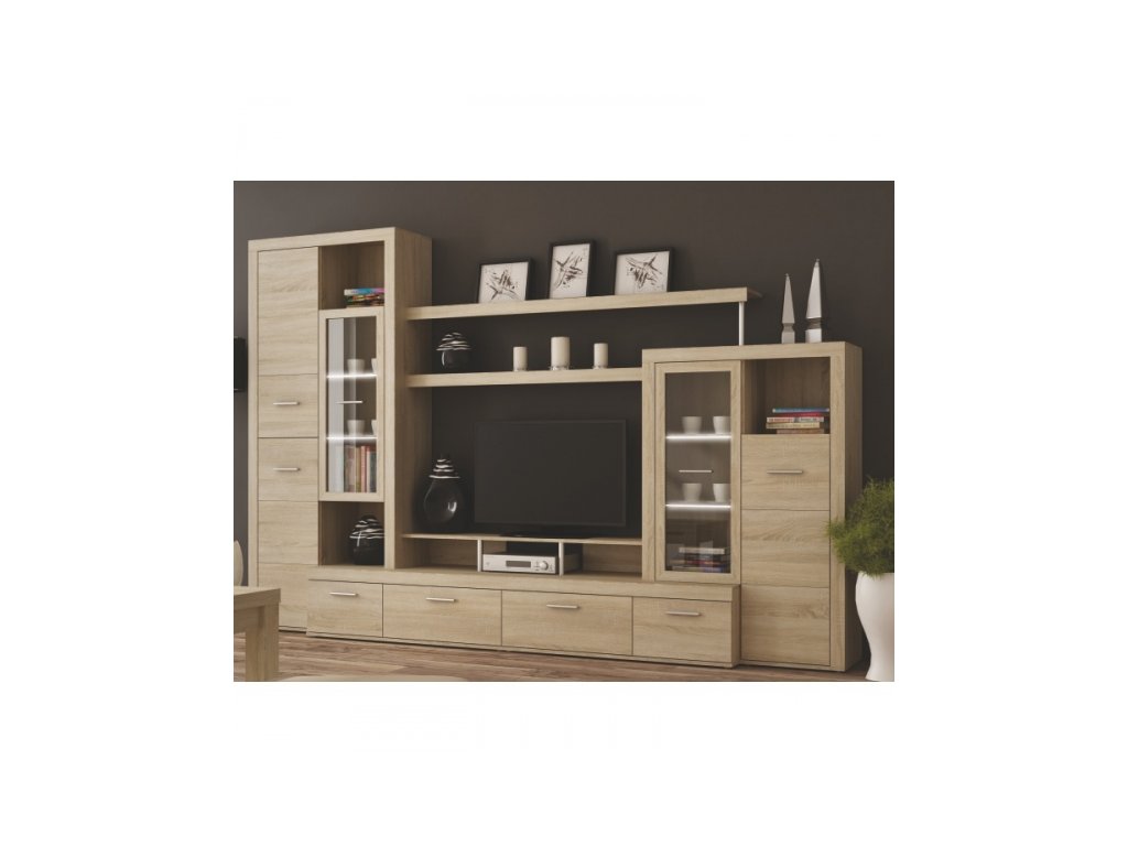 Popis: obývacia stena s LED osvetlením, materiál: DTD laminovaná,, dub sonoma, kaštan, venge rozmery ŠxVxH: 300x202x48 cm. Dodávané v demontu. Hmotnost: 136 kg
