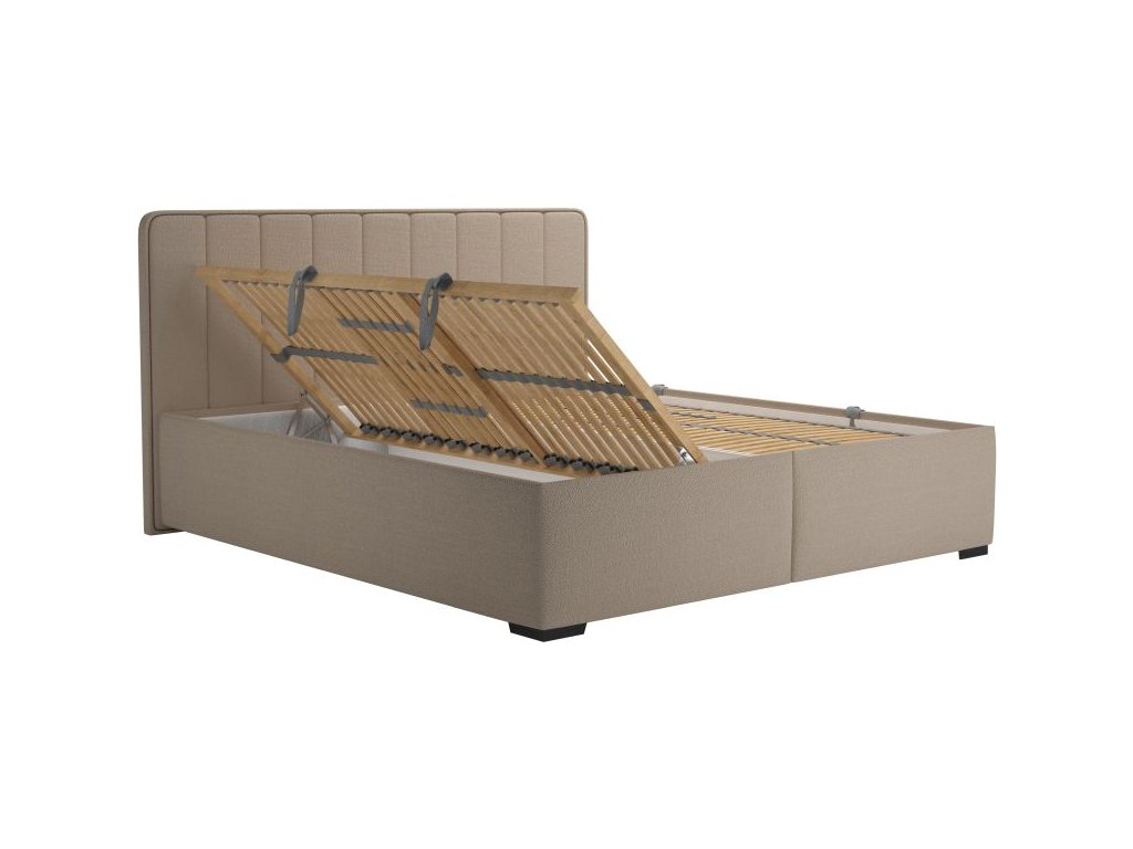 Dvojlůžko s úložným prostorem a lamelovým roštem - výklop z boku.