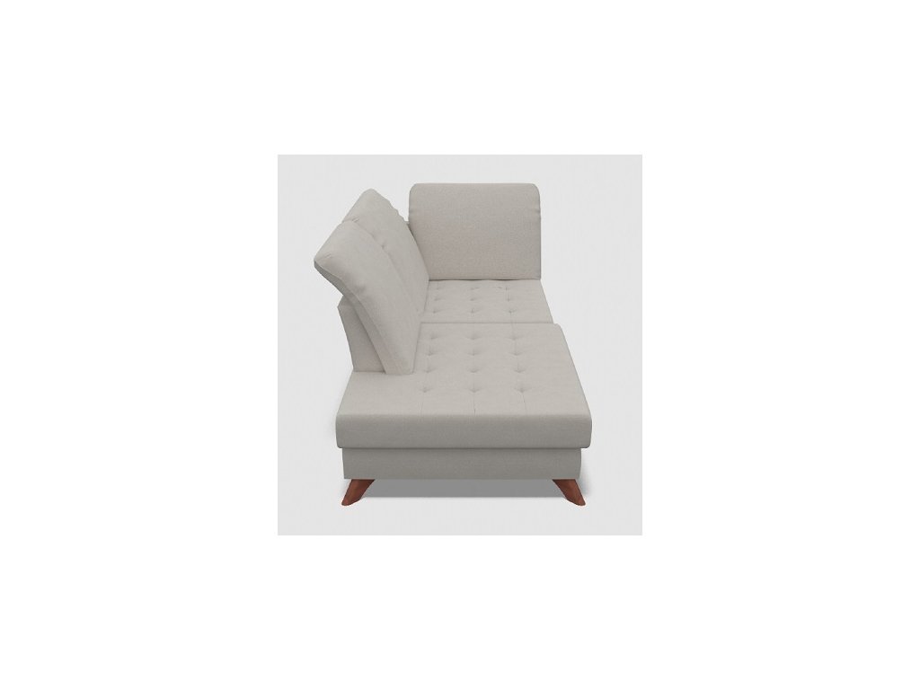 Bez úložného prostoru. Nastavitelný záhlavník. Sedák: Pěna PUR/ vysoce elastická pěna/ pružina vlnovec. Opěrák: Pěna PUR/ elastický pás. Nohy dřevěnné N nebo kovová CR.  Možnost posuvné opěrky zad.