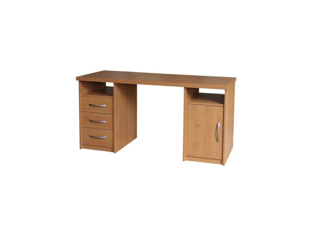 vyniká svou funkčností, praktičností a dobrou cenou výhodou tohoto psacího stolu je jeho univerzálnost tzn. šuplíky lze umístit jak na pravou tak na levou stranu skvělá volba do kanceláře i dětského pokoje, pro práci s počítačem i psaní domácích úkolů materiál lamino 1,8 cm, pracovní deska voština 3,8 cm chromové úchytky povrchová úprava satin olepeno ABS hranou 0,2 cm český výrobek dodáváno v demontu