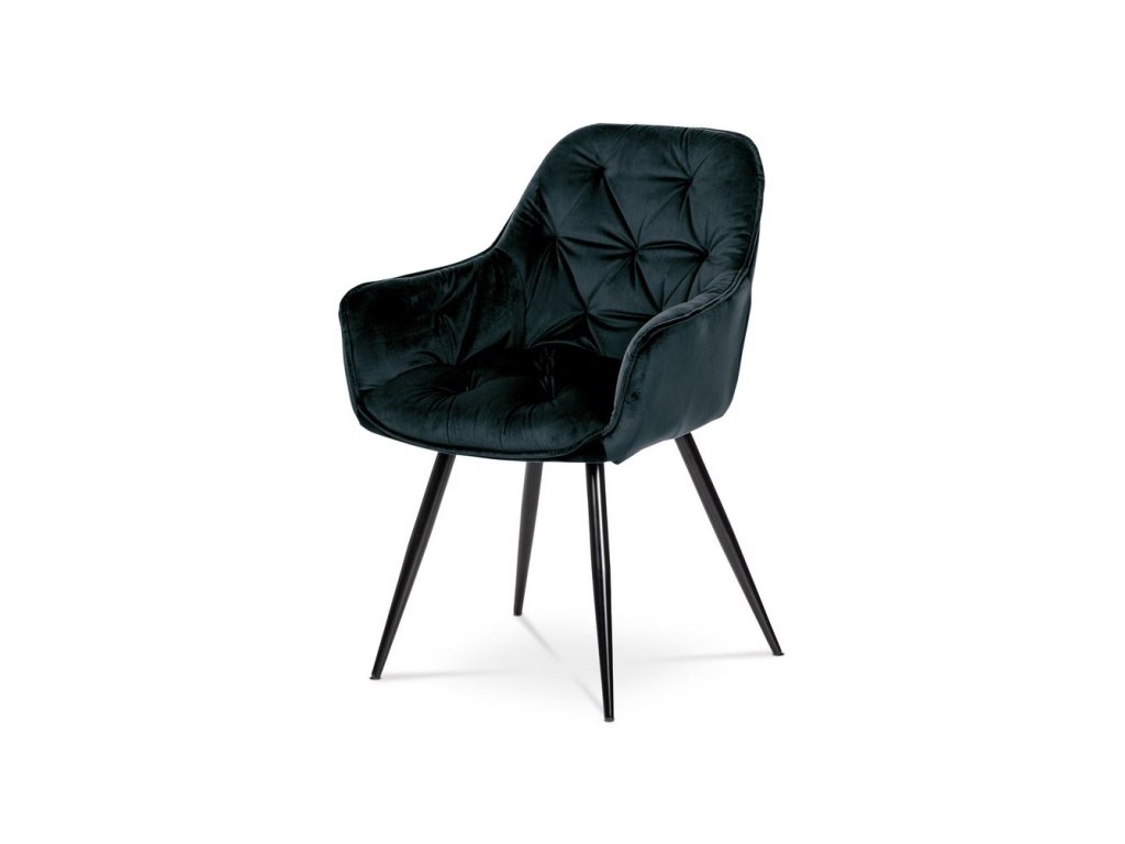 Jídelní židle, potah sametová látka, kovová 4 nohá podnož, černý lak.