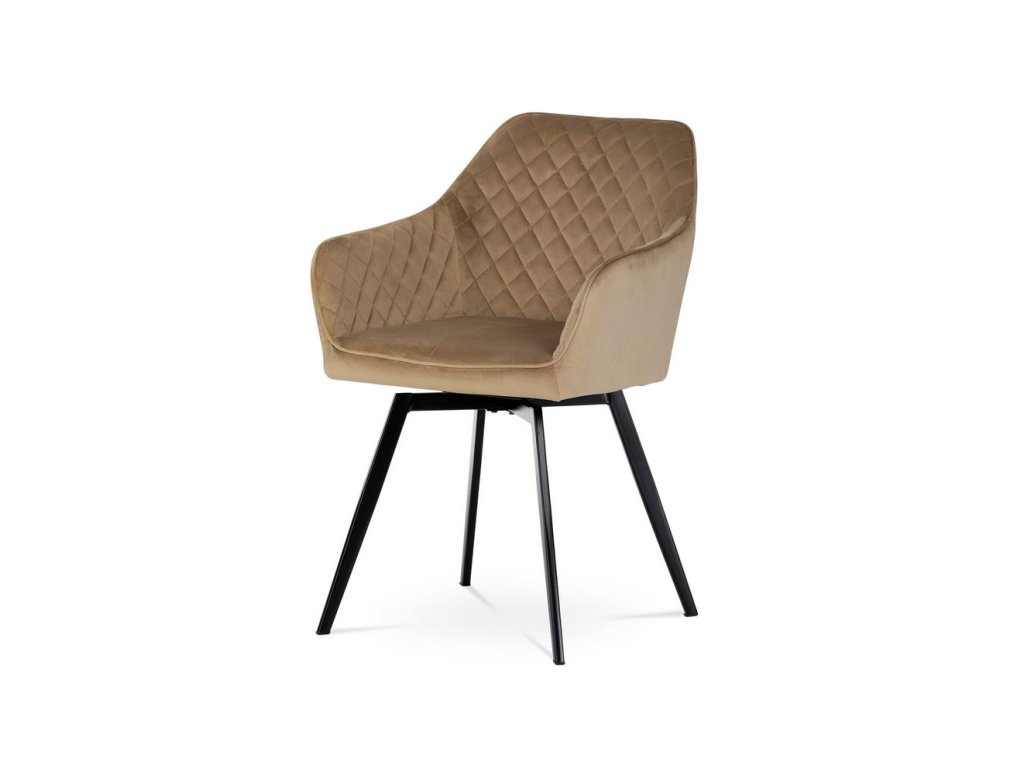 Jídelní židle, potah cappuccino sametová látka, kovové nohy, černý matný lak. Skořepina sedáku a opěradla má potah z kvalitní sametové látky. Polstrování je z PU pěny. Vybraná látka se také velmi dobře čistí. Stabilitu židle zajišťují čtyři kónické kovové nohy obdélníkového průřezu s kvalitním práškovým nástřikem v černé matné barvě. Ukončené jsou černými plastovými kluzáky, zabraňující poškození tvrdých povrchů podlah. Nosnost židle je 110 kg.Bonusem této židle je otočný a vratným mechanismus, který umožňuje otáčení o 90° doleva a o 90° doprava a zároveň vždy vrátí sedák do původní polohy. Díky němu žiidle zůstanou vždy srovnané u stolu.Buďte první, kdo napíše příspěvek k této položce.