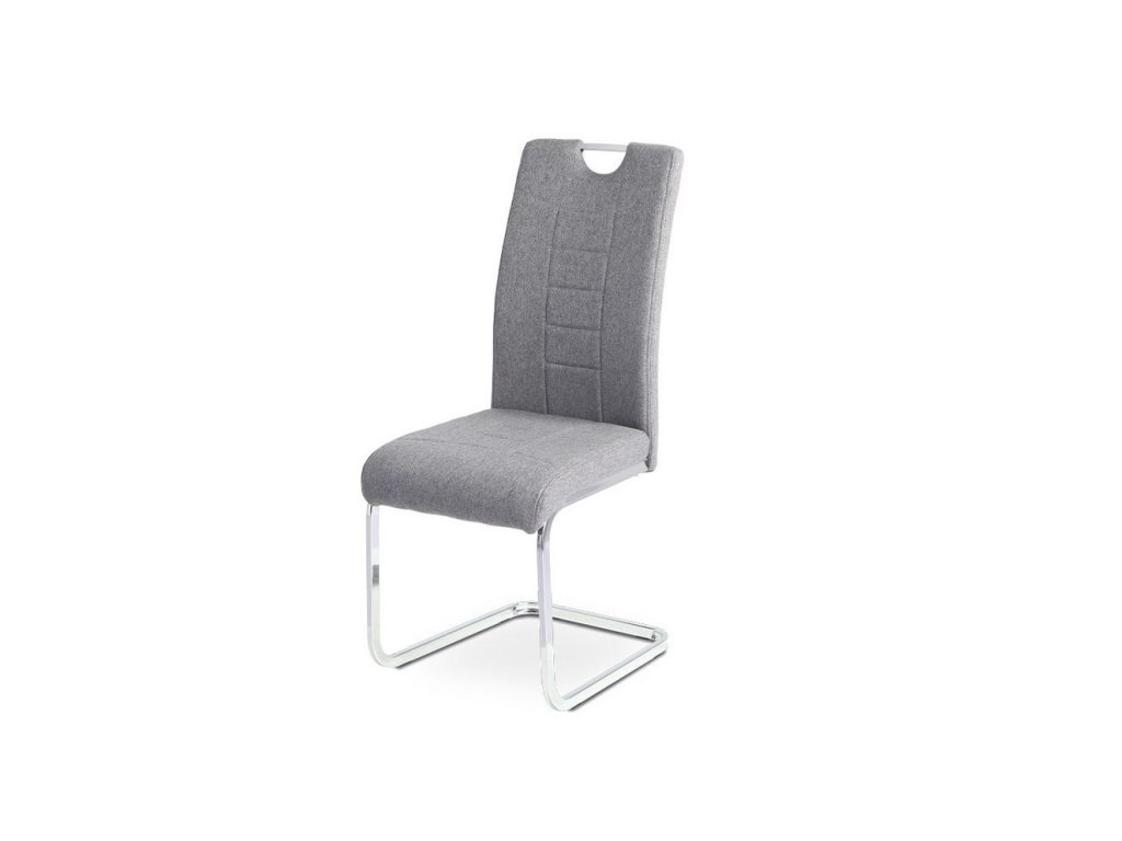 Jídelní židle, šedá látka, kovová pohupová chromovaná podnož.