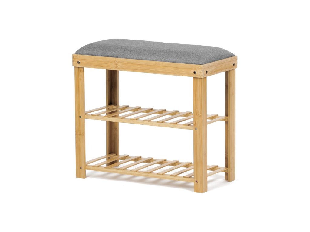 Vyroben z masivního bambusu v přírodní barvě, nabízí dvě prostorné police pro vaši obuv. Horní polstrovaná sedací plocha v šedé barvě