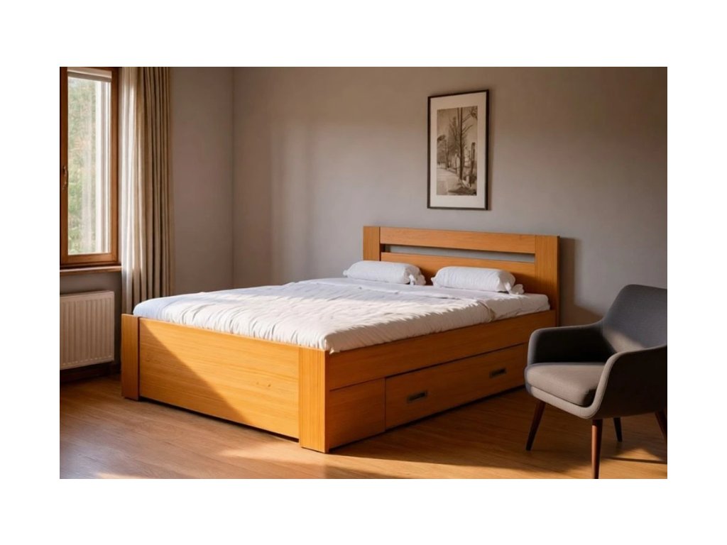 Cena lůžka včetně úložného prostoru bez matrace a bez roštu. Zátěž roštu do 120 kg.