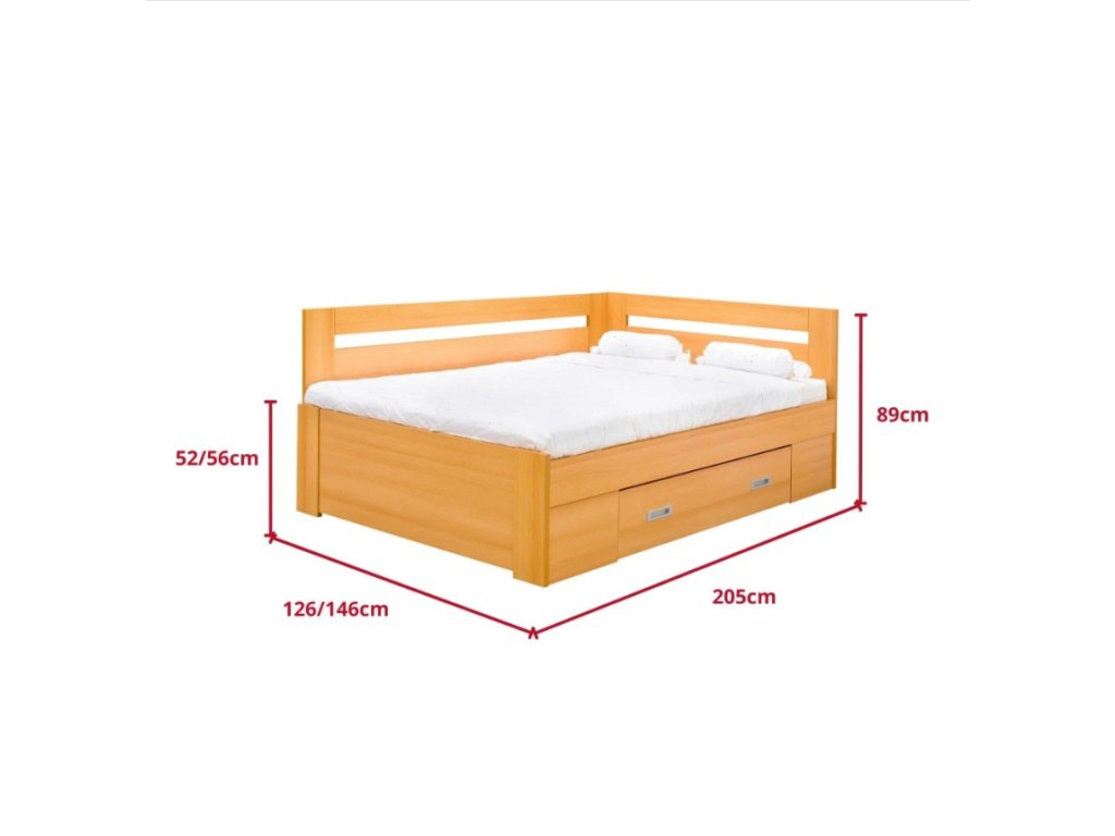 - Rohové provedení s jednou velkou zásuvkou poskytne praktický úložný prostor na lůžkoviny i sezónní věci. Zásuvka se díky kolečkům vysouvá lehce a tiše.