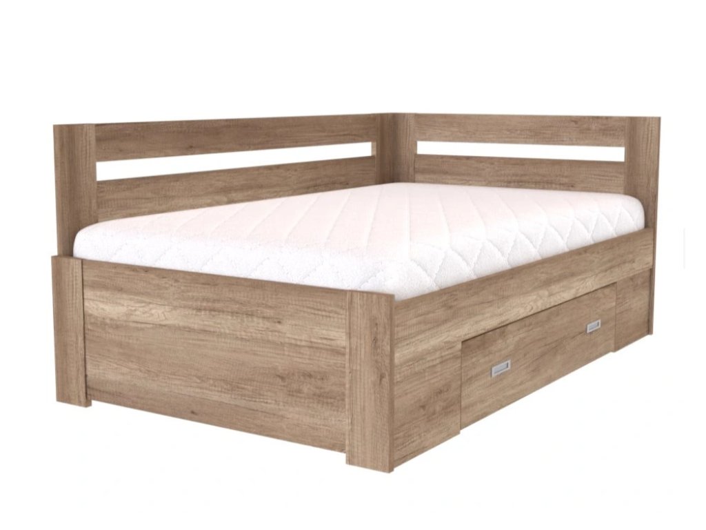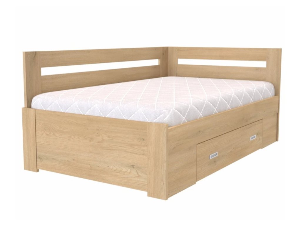 FABIE 120, 140 francouzké lůžko rohové s úložným prostorem, univerzální L/P,bez roštu