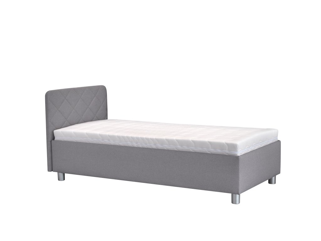 Lůžko má mechanicky polohovací lamelový rošt, který umožňuje zvednutí hlavy v sedmi polohách a nohou v jedné poloze. Na lamelovém roštu je umístěna volně ložená matrace, která je opatřena textilním, snímatelnýma pratelným potahem. Při výběru postele lze zvolit i variantu bez matrace. Úložný prostor lůžka se otevírá za pomoci plynových pístů od nohou postele.Čelo je oboustranně čalouněné. Výška nožiček 10 cm. Možnost zakoupení dekoračních polštářů. Možnost i v jiných látkách za stejnou cenu. Velký vzorník látek na prodejně v Sedlčanech.Buďte první, kdo napíše příspěvek k této položce.