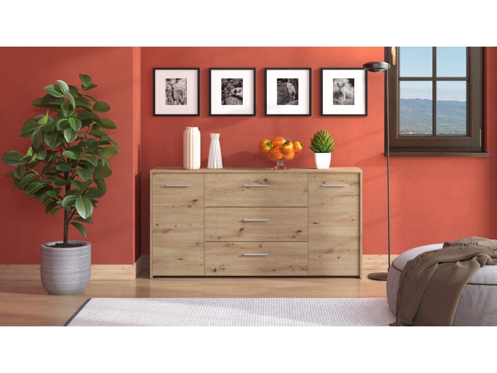 Komoda s 3 zásuvkami a 2 skříňkami s policí. Material:deska LTD 16 mm. Dodáváno v demontu.