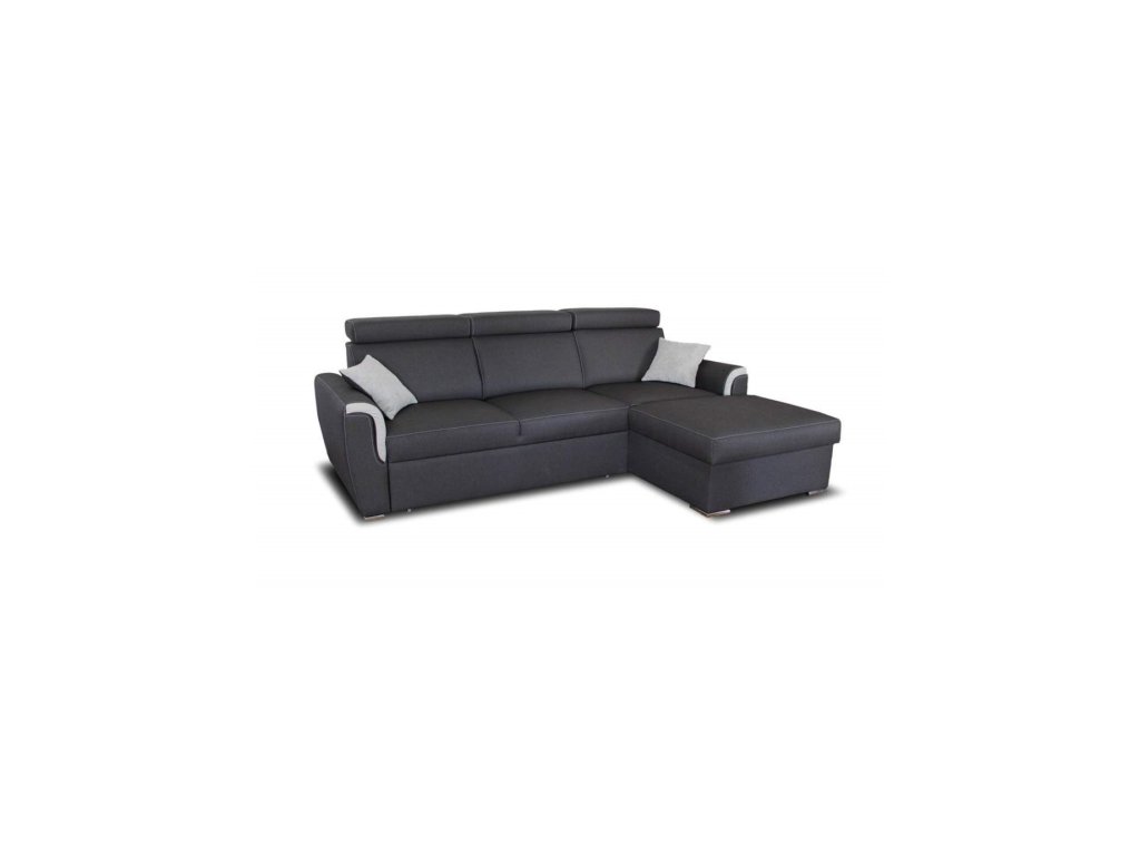 Rozkládací - prostor po rozložení 120 x 200 cm. Úložný prostor. Sedací souprava má očalouněná záda. Levá nebo pravá varianta. Výplň sedáků a opěráků - PUR pěna. Malé polštářky v ceně.