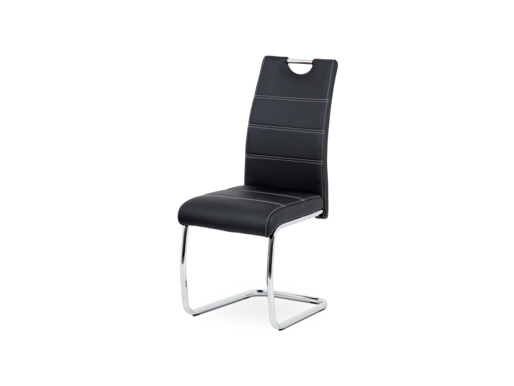 Moderní jídelní židle je čalouněná ekokůží s dekorativním bílým prošitím sedáku i opěráku. Moderní vzhled podtrhuje kovová pohupová podnož s chromovou úpravou. Podnož je navíc speciálně tvarovaná pro lepší stabilitu a bezpečí a je na šesti černých plastových kluzácích, které sníží riziko poškození Vaší podlahy. Pro snazší manipulaci má židle i madlo v horní části opěráku, které je kovové a též s chromovou úpravou. Nosnost židle je až 110 kg.Buďte první, kdo napíše příspěvek k této položce.