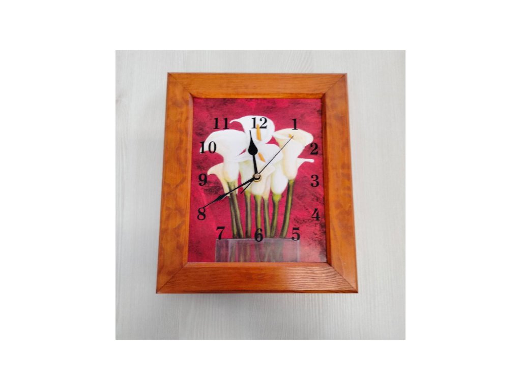 Hodiny v dřevěném rámu s dekorem květin