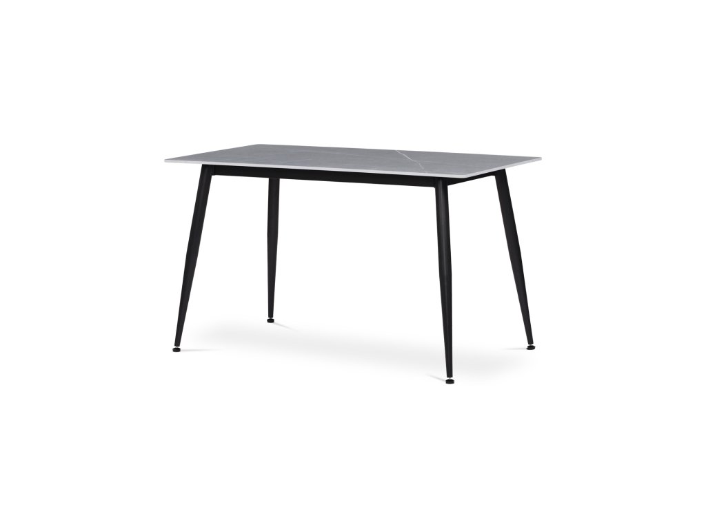 Moderní stůl 130x70x76 cm s deskou ze slinutého kamene, imitující šedý matný mramor. Podnož je kovová v práškové černé barvě. Stolová deska je s nohami volně spojená, pomocí plastových přísavných bodůBuďte první, kdo napíše příspěvek k této položce.