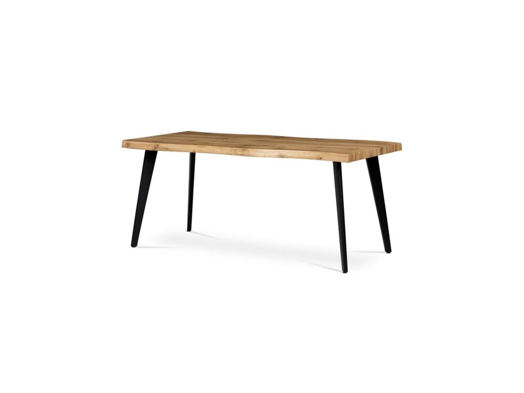 Jídelní stůl, 140x80x75 cm, MDF deska, 3D dekor divoký dub, kov, černý lak. Stolní deska je z MDF desky o mimořádné tloušťce 5 cm. Po delších stranách líce je zkosená pod úhlem téměř 45° v nepravidelných líniích, což podtrhuje její přírodní styl. Kovové nohy obdélníkového průžezu jsou opatřeny kvalitním práškovým lakem v černé matné barvy. Ve spodní části jsou opatřeny plastovými rektifikačními kluzáky, zabraňující poškození podlahové krytiny a garantující dokonalé vyvážení celého stolu. Výška stolu je 75 cm.Buďte první, kdo napíše příspěvek k této položce.