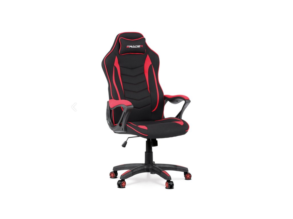 Herní a kancelářské křeslo. Příjemný potah a zaoblenými linie. Kvalitní čalounění sedáku i opěráku je zárukou pohodlného posezení. Integrovaný polštář podhlavníku s vyšívaným logem E-racer zapadá do celkové koncepce herního křesla.Křeslo je vybaveno houpacím mechanismem. Síla houpání se reguluje plastovým šroubem pod sedákem. Výška sezení se upravuje páčkou na pravé straně přes kvalitní plynový píst. Masivní černý plastový kříž je osazen plastovými kolečky na koberec. Nosnost je 130 kg.