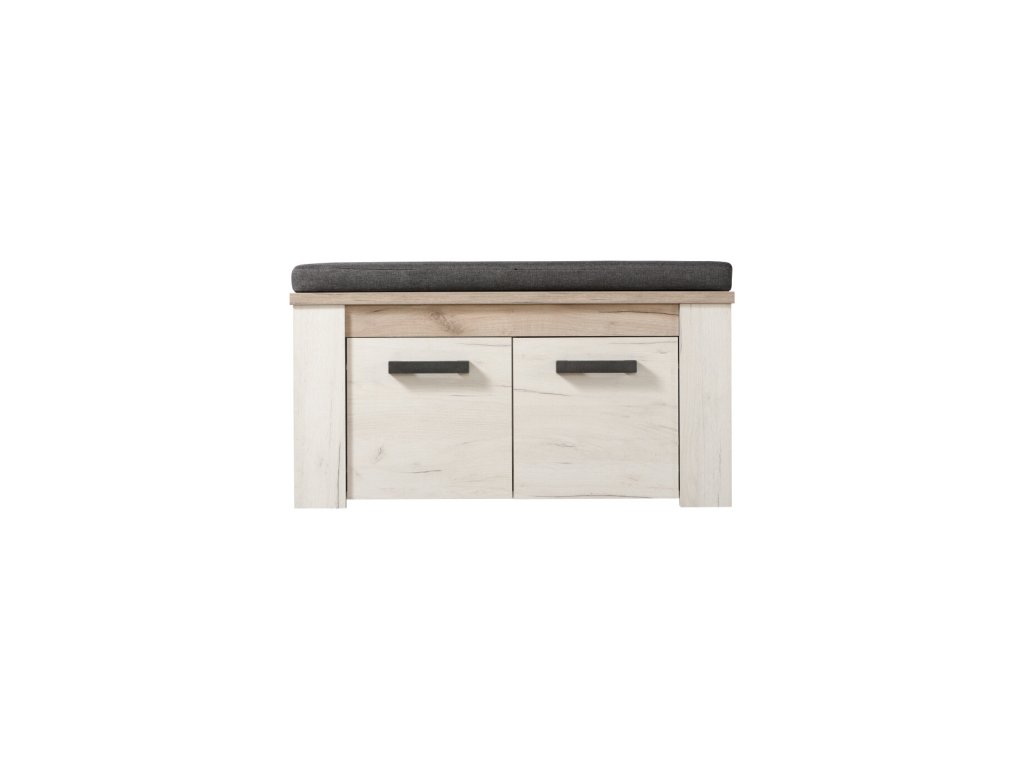 Nábytek je vyráběn v kombinaci barev dub bílý a dub šedý.Materiál lamino. Nábytek je dodáván v demontu. Botník je vybaven čalouněným sedákem.