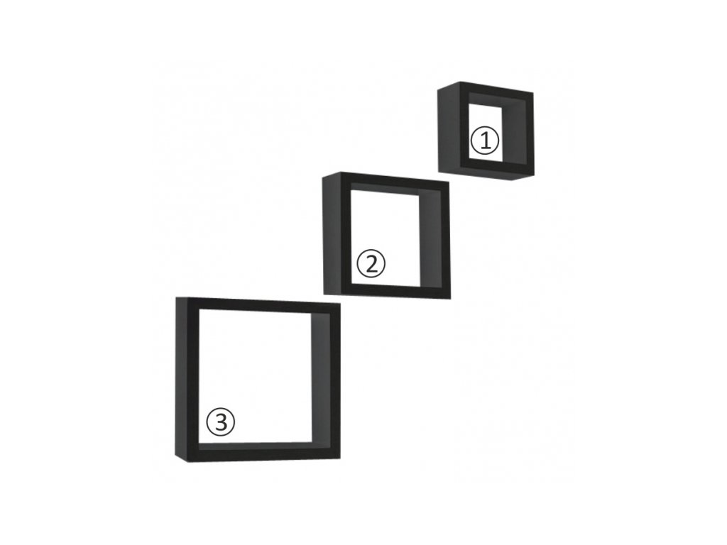 Sada 3 ks polic Materiál: MDF Provedení: černá, bílá Rozměry: š x v x hl 3. 25,4 x 25,7 x 8,7 cm 2. 20,3 x 20,3 x 8,7 cm 1. 15,3 x 15,3 x 8,7 cm