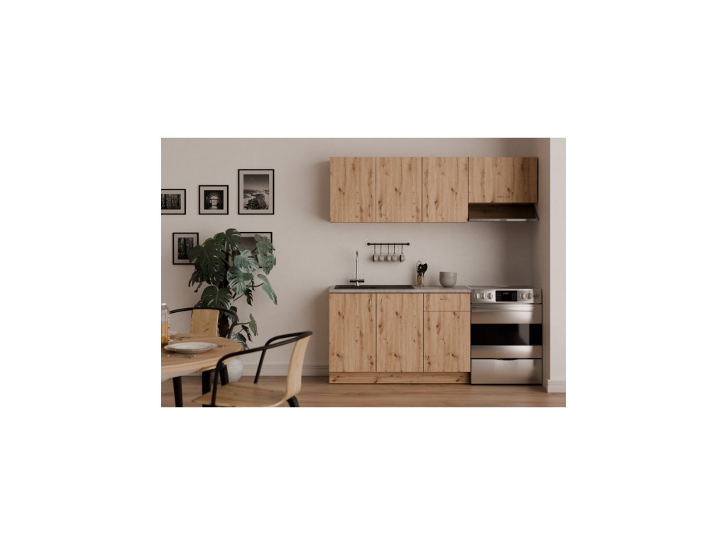 Rozměry a uspořádání:Horní část sestavy se skládá ze tří skříněk:• 80 cm široká dvoudveřová skříňka• 40 cm široká jednodveřová skříňka• 60 cm široká skříňka nad digestoř (výška horních skříněk: 30 cm)Spodní část nabízí praktický úložný prostor:• 80 cm široká dvoudveřová skříňka (vhodná pro umístění dřezu)• 40 cm široká skříňka se zásuvkou• Hloubka spodních skříněk je 45 cmFunkčnost a kvalita:• Laminovaná dřevotříska zajišťuje odolnost a snadnou údržbu• Kovové úchytky pro komfortní otevírání skříněk• Kompaktní rozměry umožňují využití i v menších kuchyníchDřez, baterie a pracovní deska nejsou součástí sestavy .Buďte první, kdo napíše příspěvek k této položce.