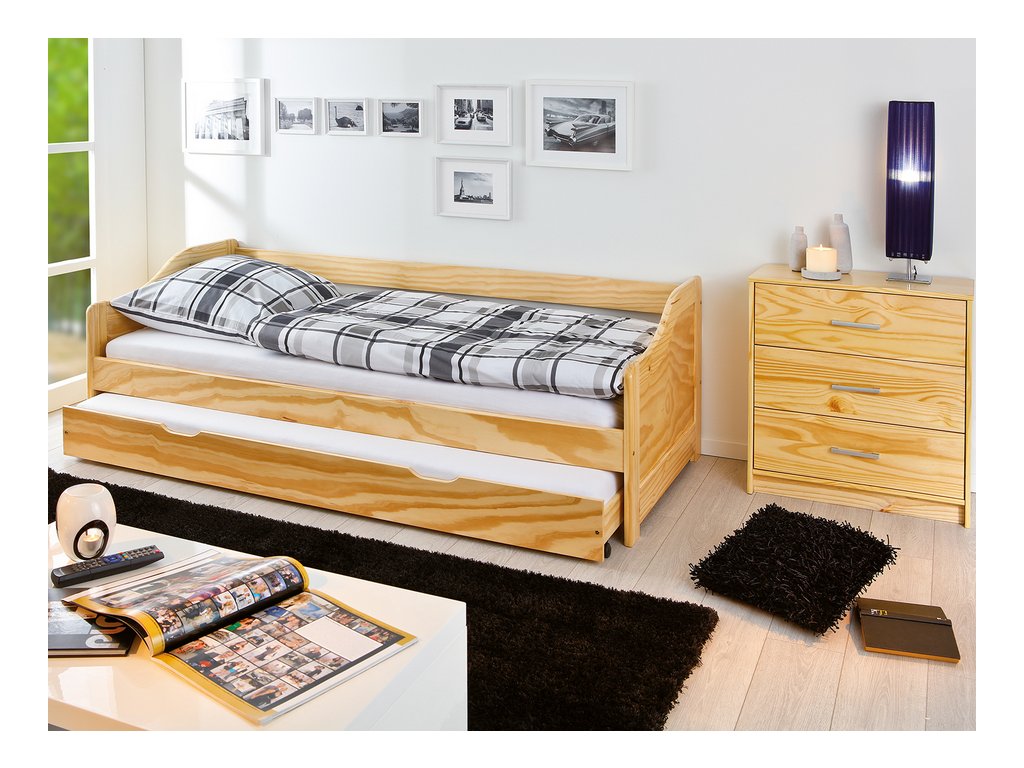 LAURA postel s výsuvnou přistýlkou 8808, borovice masiv