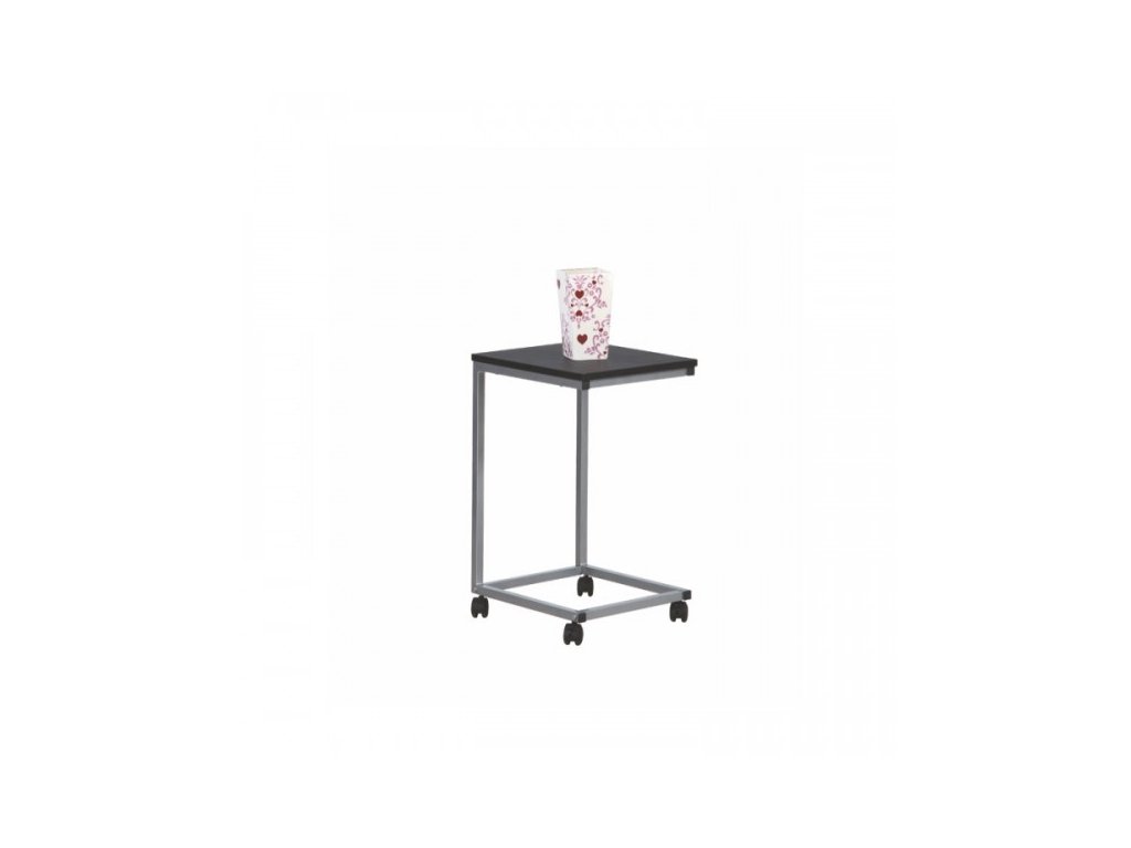 Černostříbrný stojan s jednou odkládací deskou. Je velice lehký a snadno se dá kamkoliv přemístit, díky kolečkům. MDF černá + kov (stříbrná)