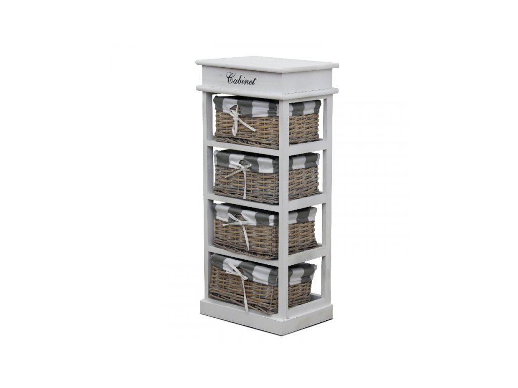 komoda se 4 proutěnými košíky v pevném dřevěném rámu, barevné provedení šedobílé, materiál: dřevo / proutí,