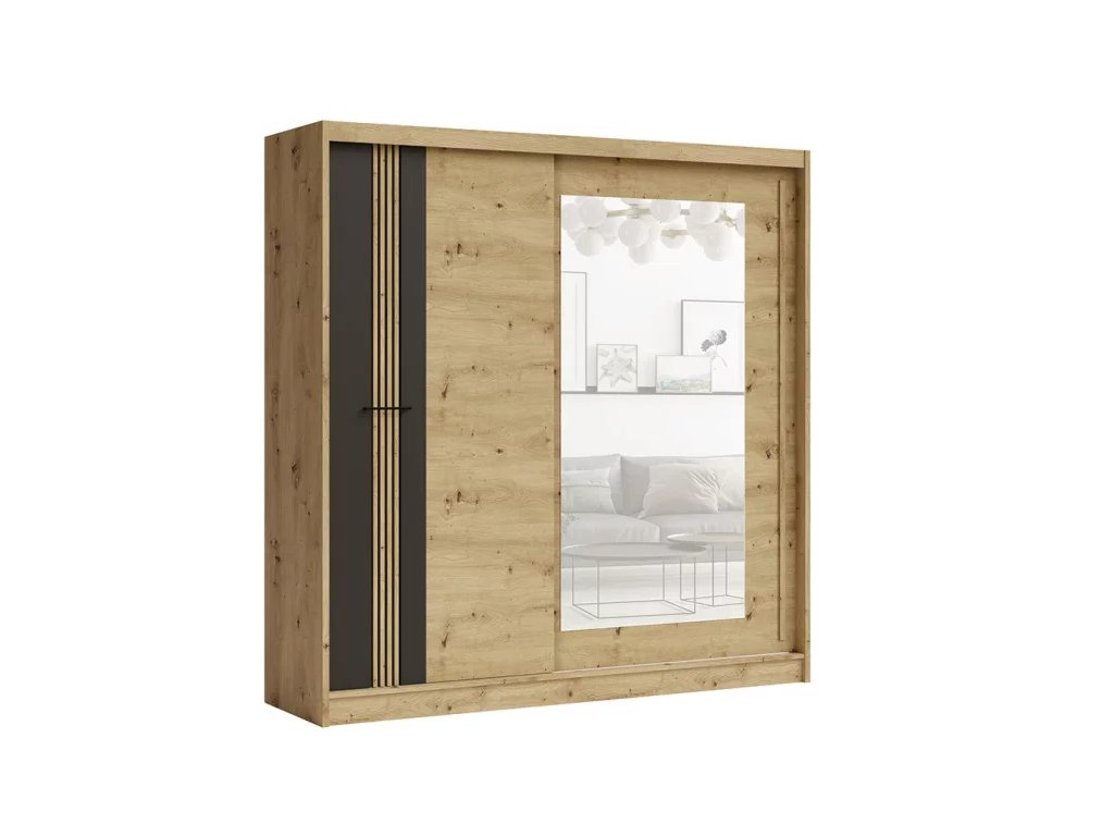 MOLTO ML-200 skříň šatní se zrcadlem,dub artisan/černá