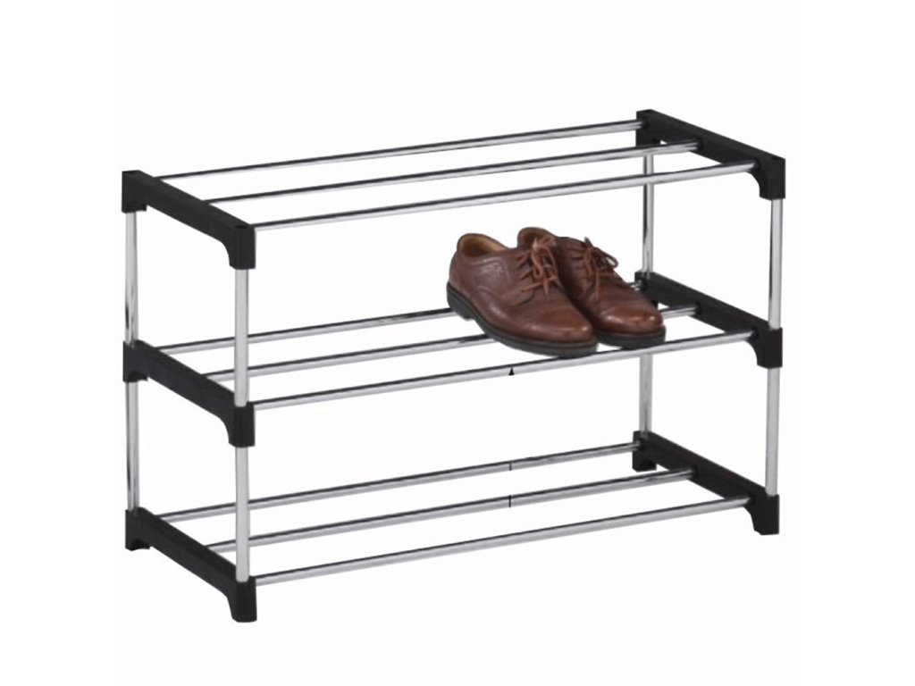 Popis: 3-řadový botník Materiál: chrom + černý plast| Kategorie: | Stojany na boty |