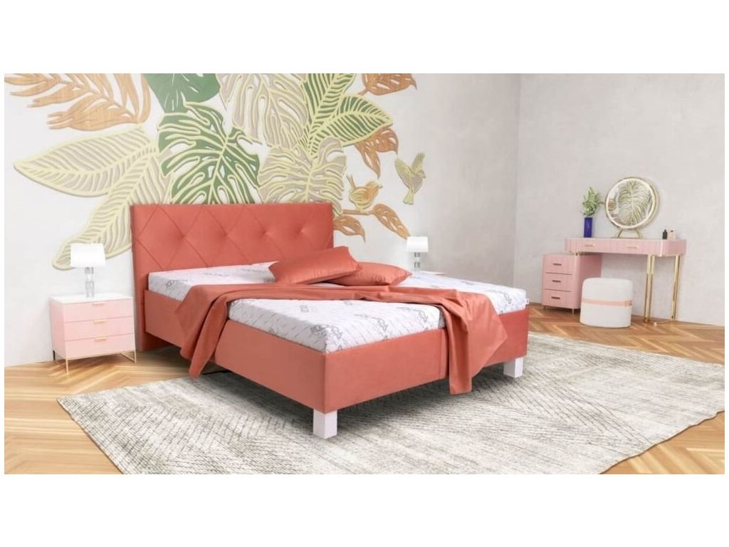Kvalitní čalouněná postel je vyrobena z laminovaných, dřevotřískových desek, polstrována a čalouněná látkou.