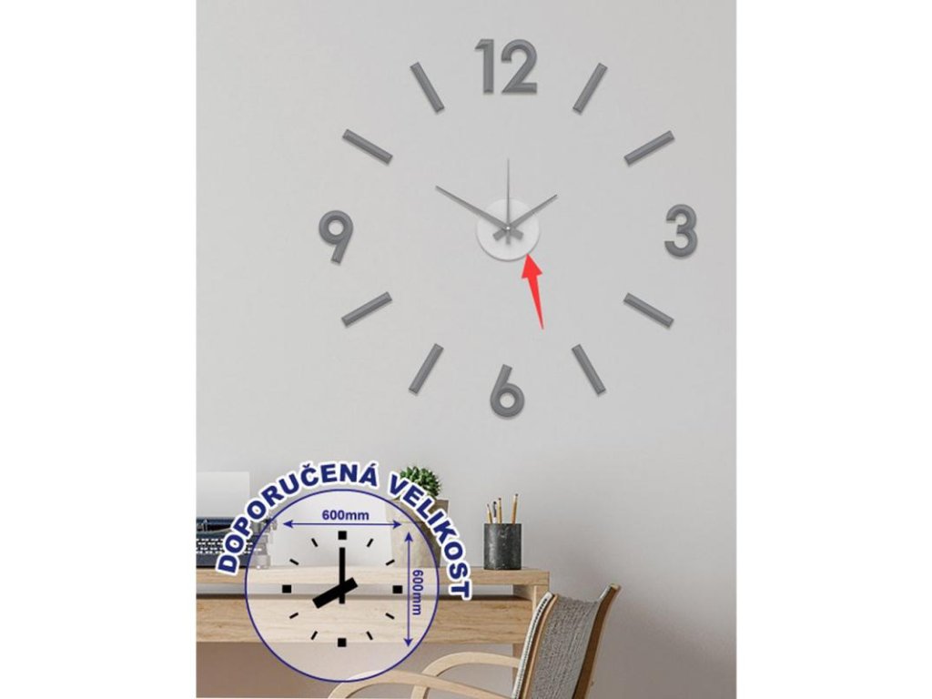 Originální hodiny se samolepícími číslicemi, které si sami nalepíte na plochu podle svých představ a utvoříte tak nevšední a moderní interiér. Hodinový strojek na jednu baterii AA lze na stěnu upevnit taktéž pomocí samolepící fólie či zavěsit na háček.