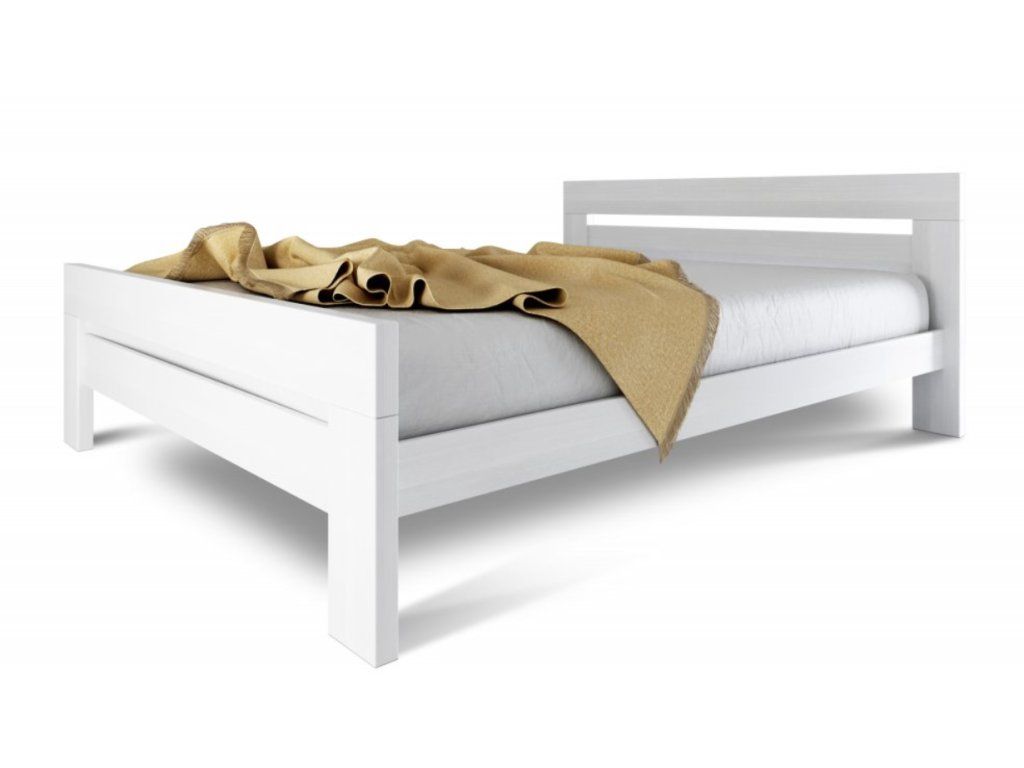 Postel je vyrobena z masivního buku. Tloušťka čela 4 cm. Tloušťa bočnice 2 cm. Cena lůžka bez roštů a bez matrace.