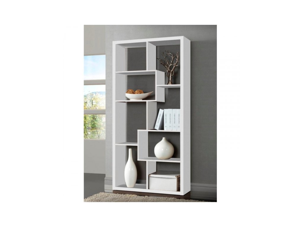 Popis: moderní víceúčelový regál, korpus je hrubý 34 mm, provedení: bílá nebo třešeň, rozměry (ŠxHxV): 89x29x179,8 cm.