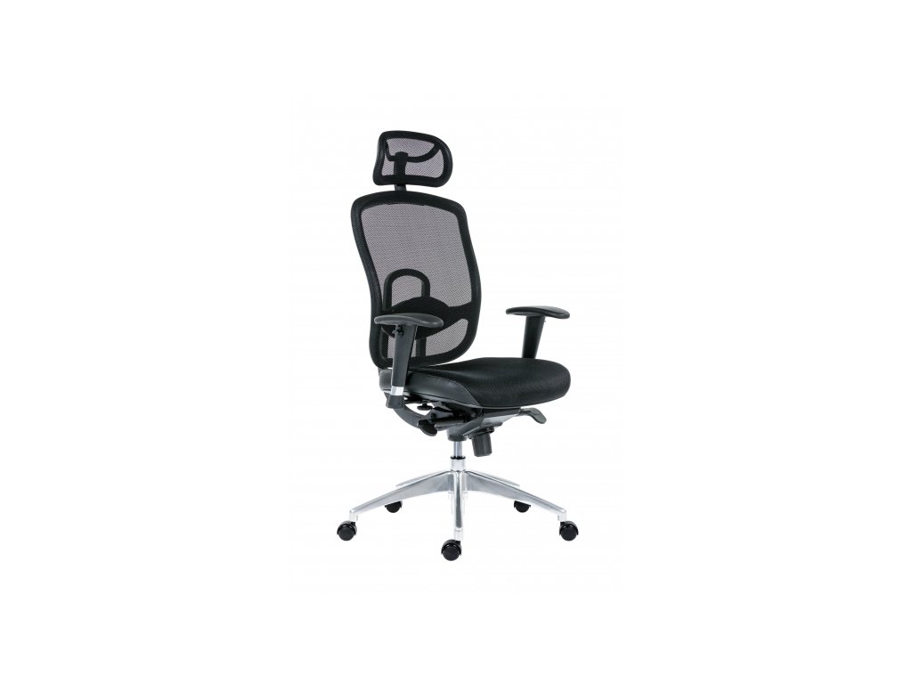 Pracovní židle s prodyšným opěrákem a opěrkou hlavy, provedení černá . netradiční provedení kancelářské židle se síťovinou na opěradle a opěrce hlavy synchronní mechanismus s několikanásobnou aretací a nastavením síly protiváhy područky s měkkou dotykovou plochou, svisle a vodorovně nastavitelné výškově a hloubkově nastavitelná bederní opěrka flexibilní opěrka hlavy s nastavením výšky - PDH leštěná aluminiová báze univerzální kolečka s gumovou obručí pro všechny typy povrchů nosnost: 130 kgBuďte první, kdo napíše příspěvek k této položce.