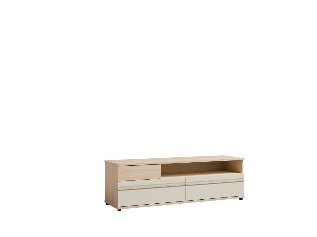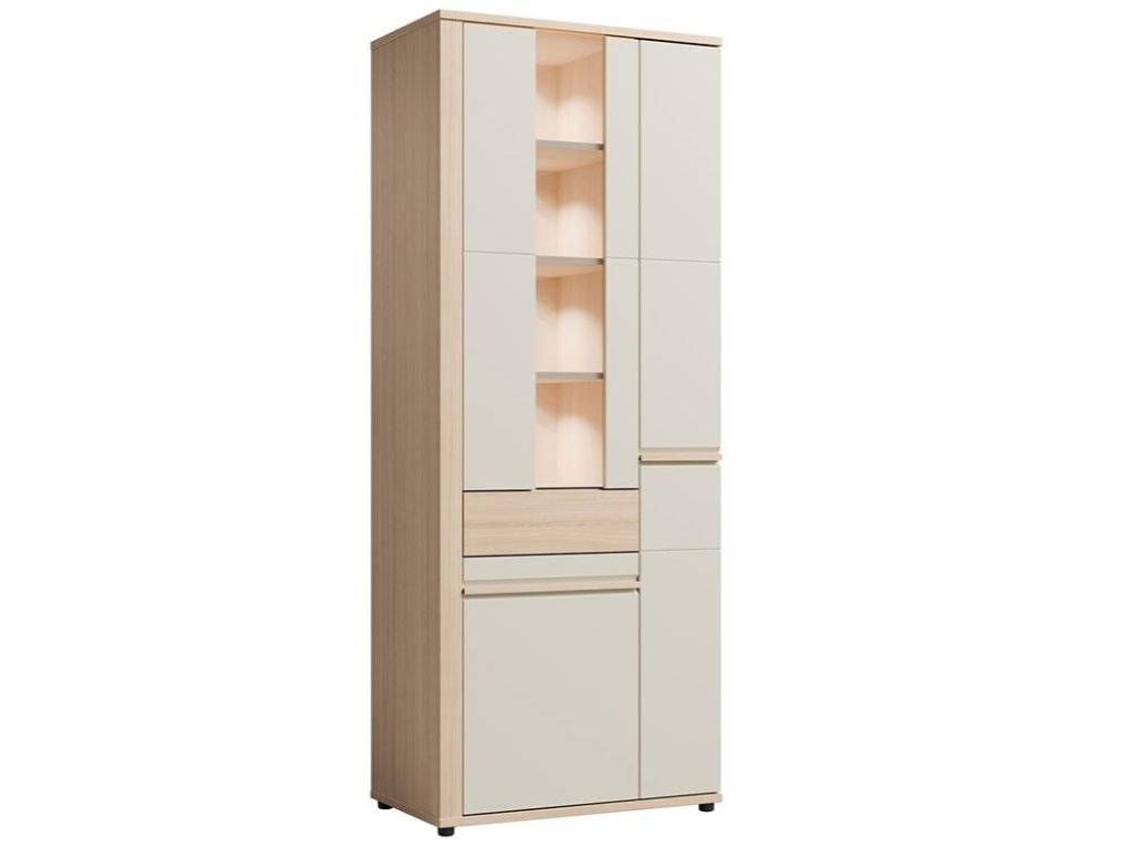 Zaujme svým moderním a elegantním designem. Je vyrobena v kombinaci světlého dřeva a béžových dvířek, které jí dodávají nadčasový vzhled a hodí se do různých interiérů. Systém otevírání Push-to-Open.