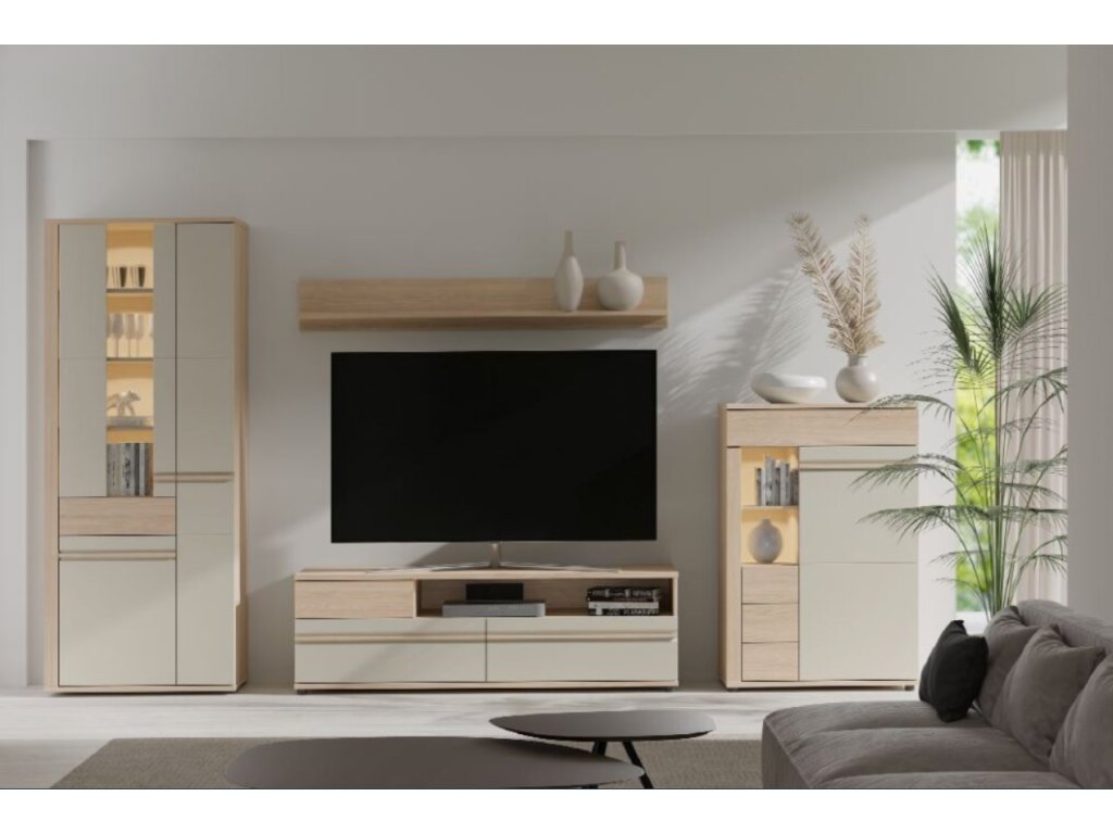 OSLO obývací stěna s osvětlením, přírodní/ cashmere