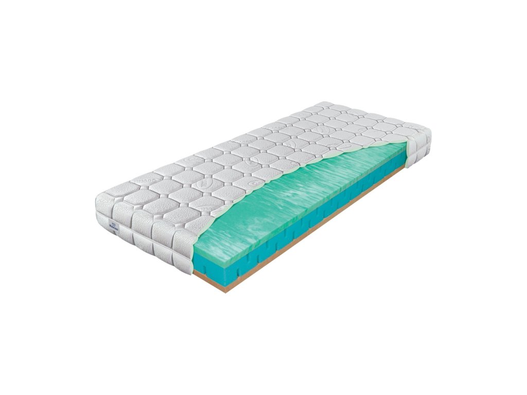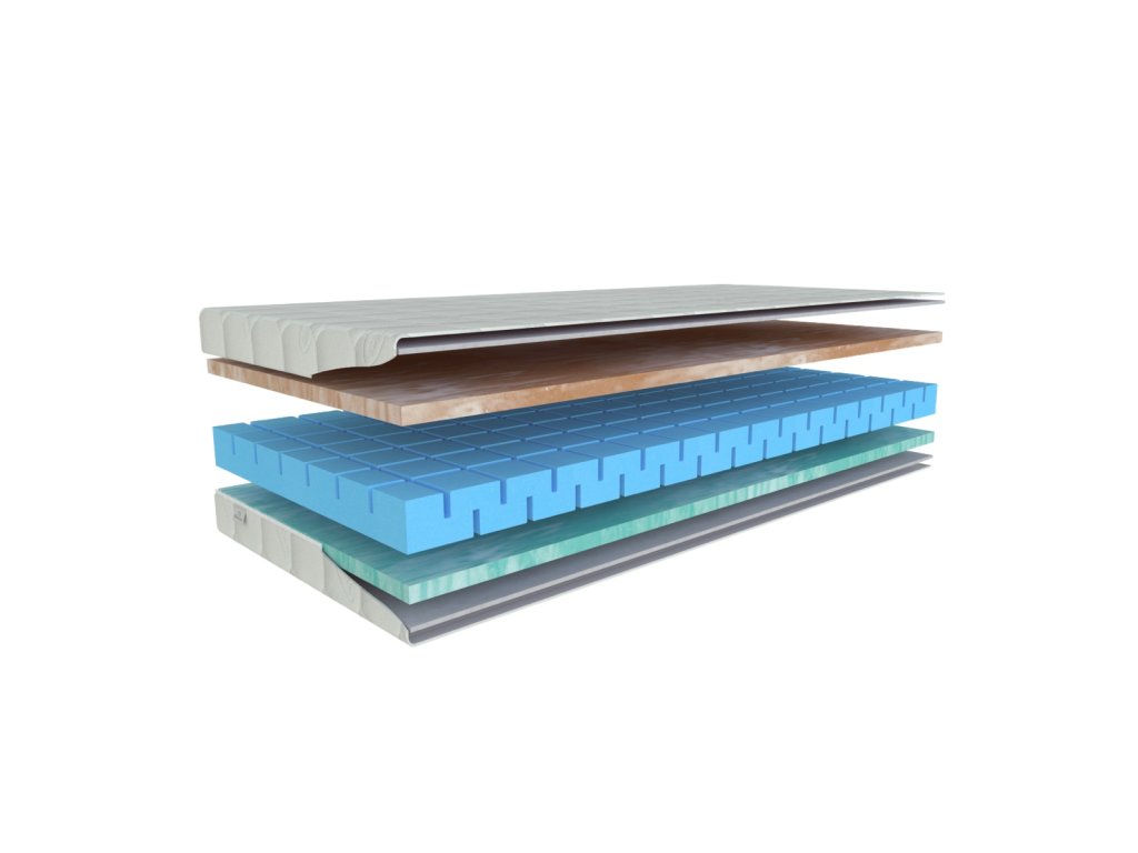 Vrchní profil: přírodní pěna BIOGREEN. Jádro matrace: značková pěna Eliocell o hustotě 35 kg/m3; spodní profil: přírodní pěna BIOGREEN. BIOGREEN – Suroviny vyráběné z ropy jsou v této pěně nahrazeny přírodním materiálem – ricinovým olejem, který je už léta využíván ve farmacii. Pěna BIOGREEN je napuštěna výtažkem z ALOE VERA, který přirozeně zvyšuje hygienu matrace tím, že likviduje roztoče a bakterie. V případě pěny BIOGREEN máte jistotu dlouhé životnosti, tvarové stálosti, vysoké elasticity, potažmo pak kvalitního spánku. To vše při zatížitelnosti až do 170 kg . Její složení zaručuje dobré kopírovací vlastnosti a pevnost. KOMFORTNÍ PĚNA je nový vývojový stupeň vycházející z ELIOCELL pěn, který při zachovaní dlouhé životnosti poskytuje o poznání vyšší stupeň komfortu. Matrace jsou vhodné na lamelový rošt