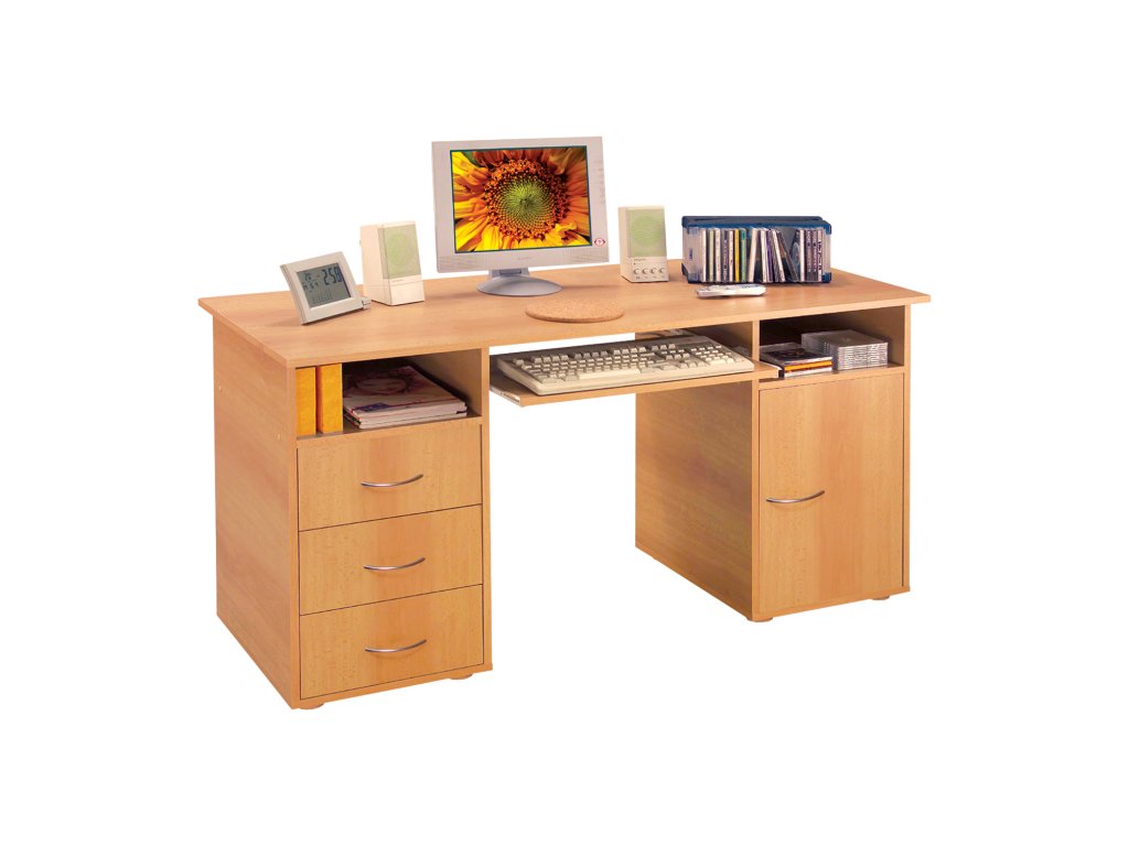 3 zásuvky, skřínka s dvířky a variabilní policí, výsuv pro klávesnici je součástí dodávky (montáž volitelná)