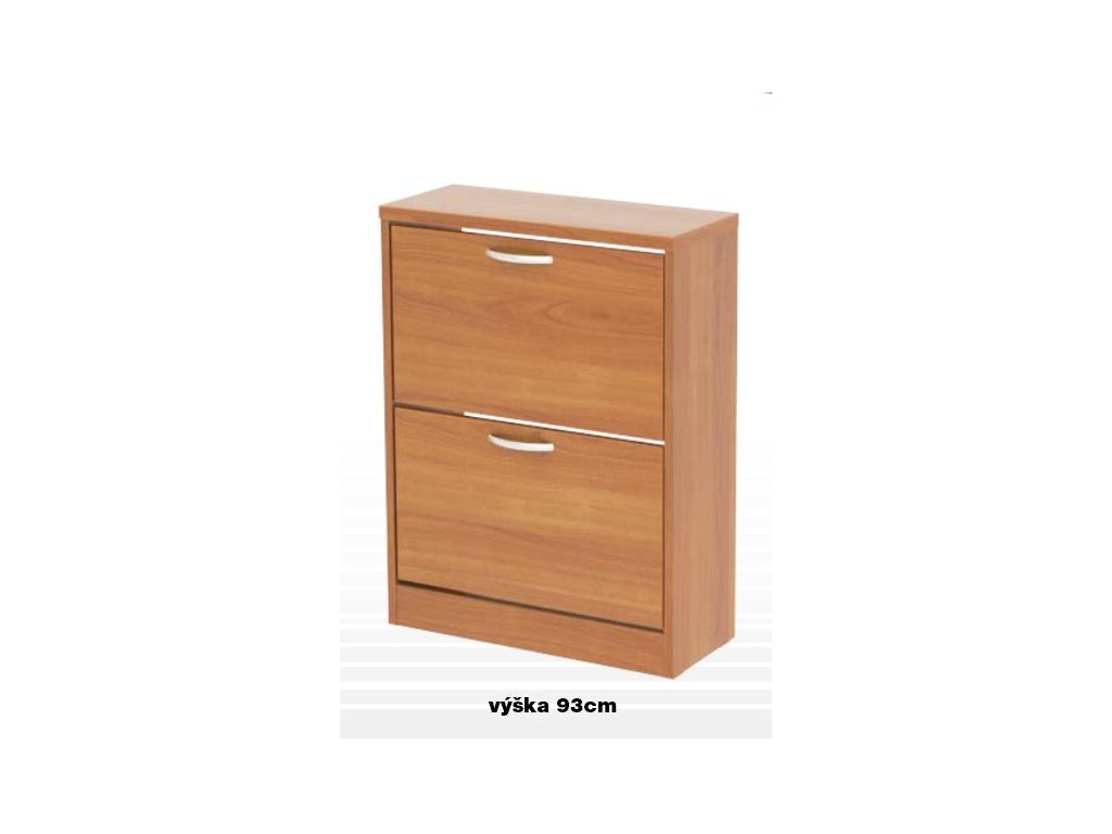 Botník s 2 výklopy. V káždém výklopu 1 přihrádk4 na boty. Kvalitní výklopné kování od firmy HETTICH. 18mm lamino, hrany jsou olepeny odolnou ABS hranou. Botník může stát na zemi nebo jej můžete zavěsit na zeď. Český výrobce.   Záruka 36 měsíců