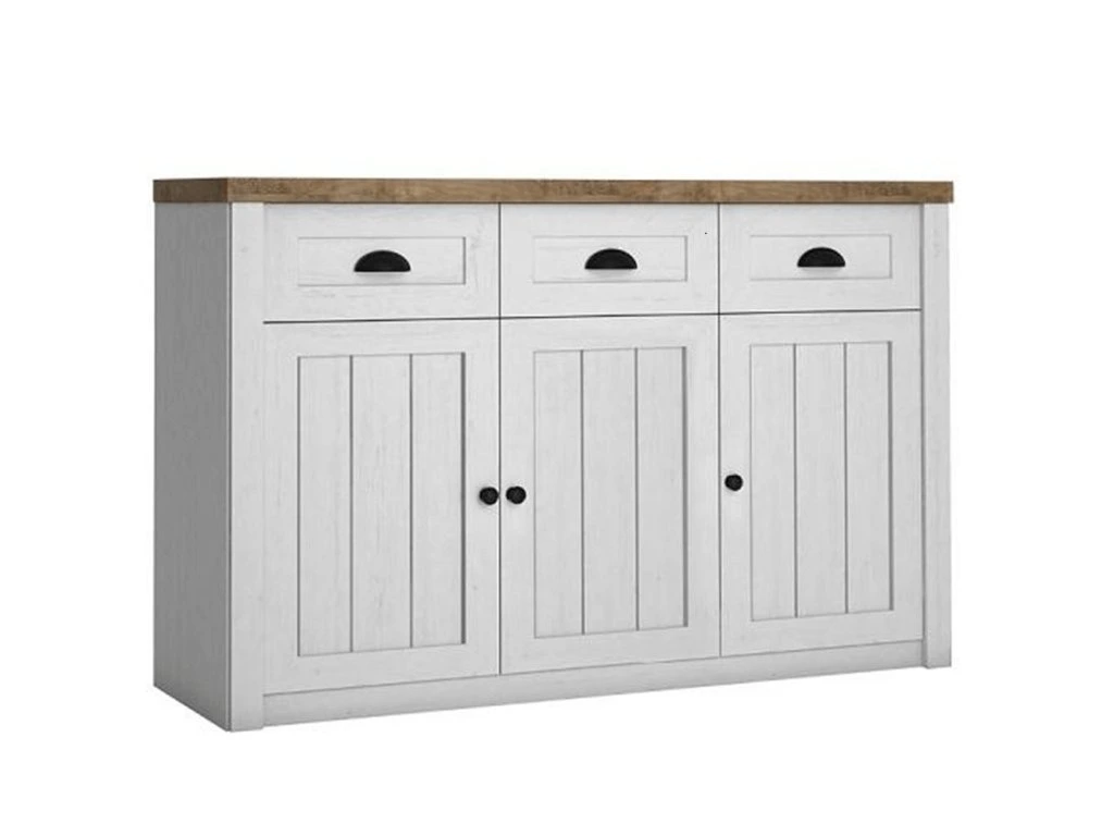 - Komoda PROVANCE poskytuje uzavřený úložný prostor. Na dvířkách se nacházejí originální úchyty. Komoda má tři šuplíky.