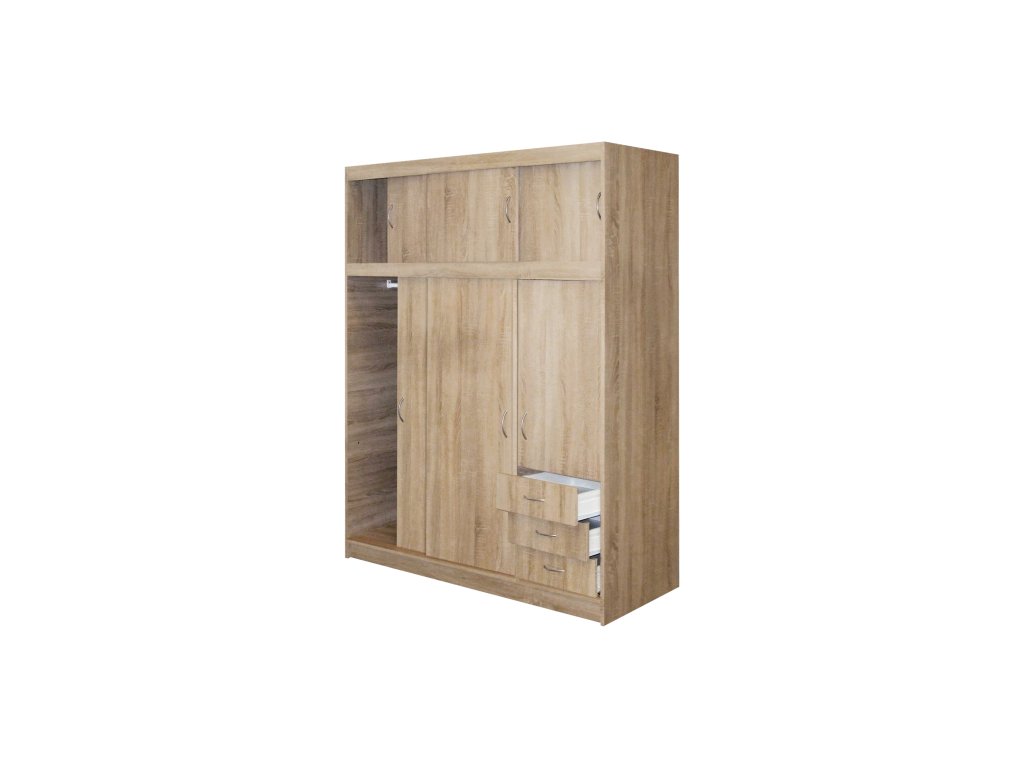popis barevné provedení - buk, dub sonoma - posuvné dveře   dělená v poměru 2:1   širší část - šatní tyč   užší část - 2 variabilní police, 3 zásuvky   cena včetně nástavce hmotnost 103 kg