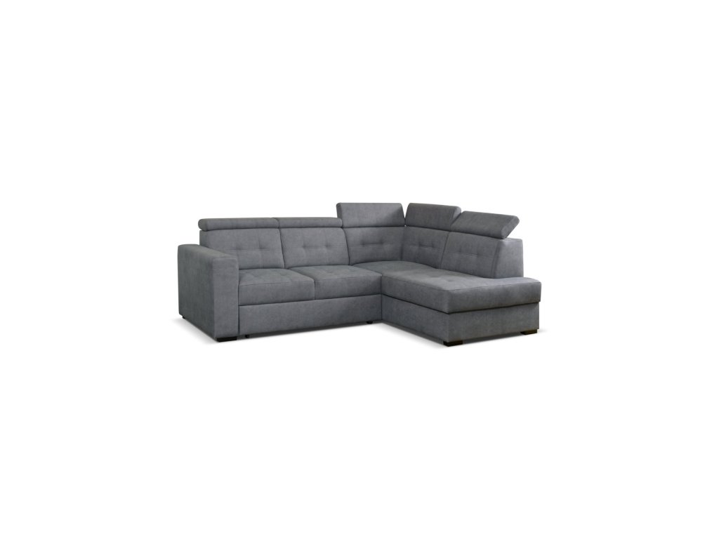 Sedací souprava s polohovatelnými záhlavníky, úložným prostorem a rozkladem. Sedací souprava s výrazným prošitím. Plocha pro spaní (po rozložení) 126 x 190 cm.