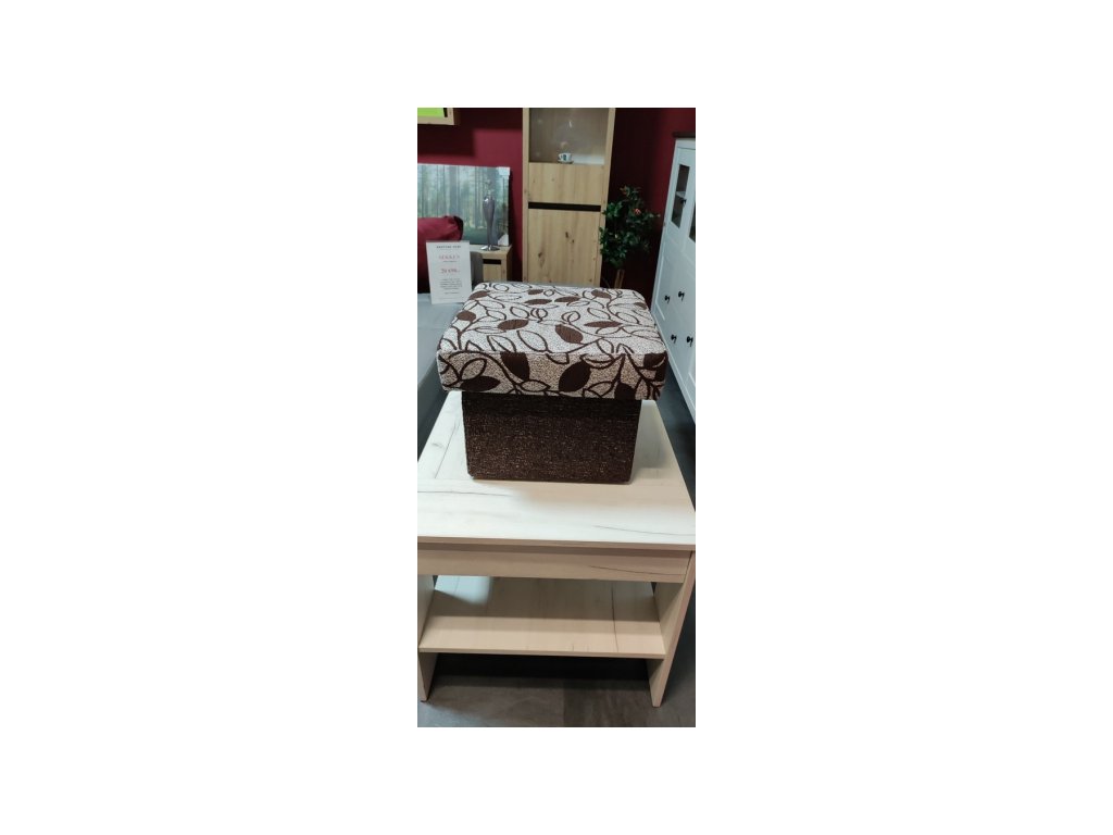 Čalouněný taburet s úložným prostorem. 42 x 42 cm. Výška 35 cm.