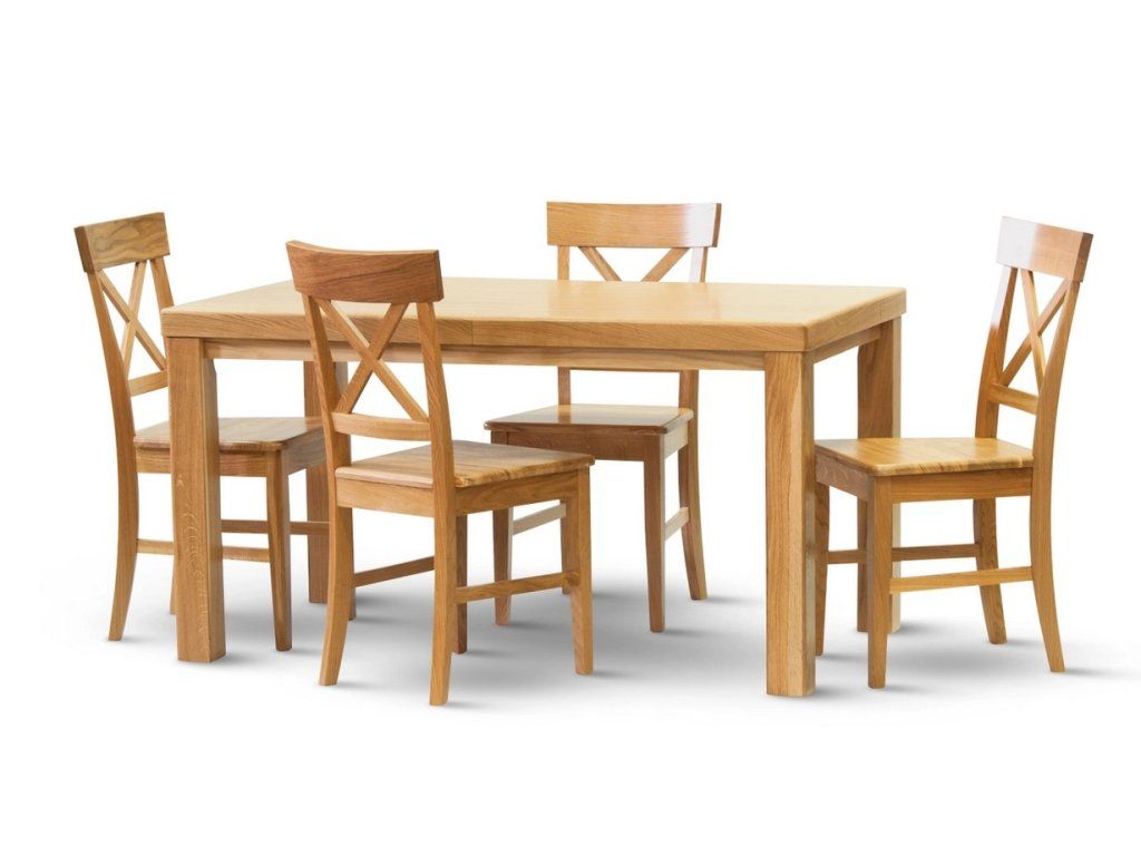 Jídelní stůl z masivního dubu. Stolová deska je z dubové dýhy odolné proti vlhkosti a poškrábání. Nohy masiv 8 x 8 cm.