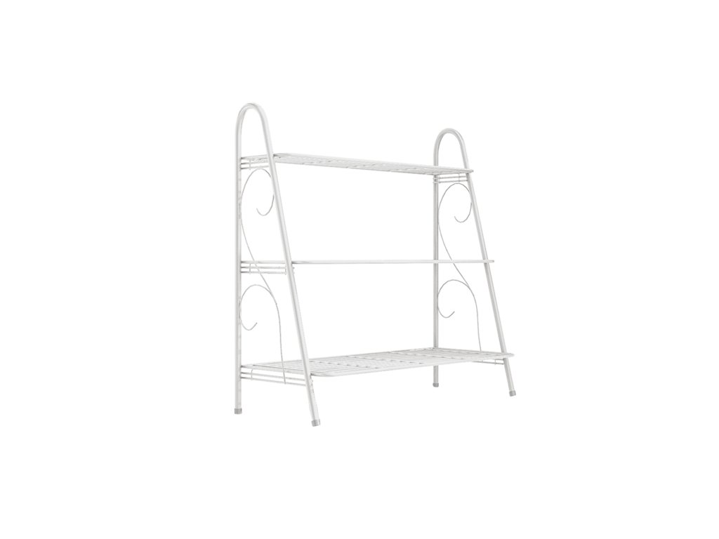 Tři otevřené police. Elegantní provedení. Vhodný do interiéru. Všestranně využitelný regál. Materiál: kov. Barva: bílá. Nosnost na polici: 10 kg. Tloušťka kovové konstrukce: 0,8-1,3 cm. Dodáváno v demontu.