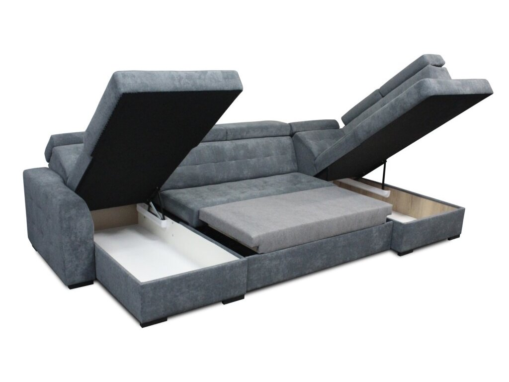 Rozkládací - plocha po rozložení 120x275 cm. Dva úložné prostory. Sedací souprava má očalouněná záda a polohovatelné podhlavníky. Možnost objednat taburet Vienna a křeslo Vienna ve stejné nebo jiné potahové látce.